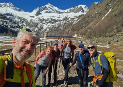 Il giorno dopo si parte presto, l’obiettivo della giornata è arrivare a una zona di laghi nella parte alta della valle di Valasco, dove passeremo dall’omonimo rifugio e arriveremo al rifugio più alto di Emilio Questa che si affaccia sul bellissimo lago portette.